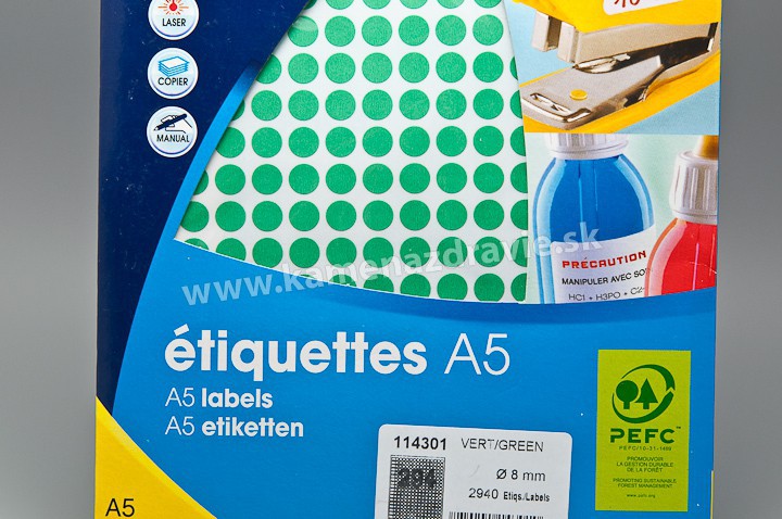 Kruhové etikety na označovanie tovaru. Priemer 8mm 4704 kusov.
